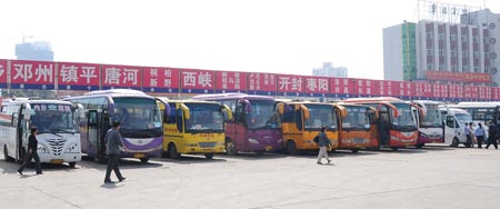 當(dāng)天上午,當(dāng)“贏運(yùn)中國(guó)”巡展車隊(duì)開進(jìn)南陽汽車站時(shí),我們馬上被車站擁擠的人潮給“震”住了,放眼望去,車站里停滿了開往全國(guó)各地的客車,熙來攘往全是去往各地的旅客,進(jìn)出站口幾乎沒有停止過車輛的進(jìn)出。這跟前幾天我們?cè)谠ケ笨吹降睦淅淝迩宓能囌拘纬甚r明的對(duì)比。記者曾經(jīng)親身體驗(yàn)過春運(yùn)時(shí)一票難求,人潮洶涌的火爆場(chǎng)面,在我看來,眼下的的場(chǎng)景與春運(yùn)相比簡(jiǎn)直是有過之而無不及。
