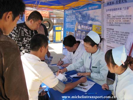 米其林萬里無憂行活動(dòng)關(guān)注司機(jī)健康給卡客車司機(jī)做健康體檢