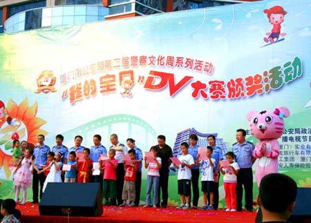 為慶祝偉大祖國60華誕和廈門市公安局建局60周年,2009年10月18日,廈門市公安局舉行了慶祝建局60周年暨第二屆“警察文化周”啟動儀式,市委常委、市公安局局長盧士鋼等出席了開幕儀式,其相關配套活動“我的寶貝DV大賽頒獎”活動也在同一時間展開。這些獲獎的寶貝DV短片大部分都是由公安干警在業(yè)余時間拍攝的,不僅展現了公安干警溫馨的家庭氛圍,更進一步豐富了民警的業(yè)余文化生活。