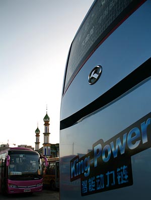 “早求車馬,同行共赴。”(明 孫柚 《琴心記•王孫作醵》),坐在高達(dá)3.8米的龍威客車上,緩緩穿行于新老市區(qū),當(dāng)我用手撥開身側(cè)的窗簾,一縷陽光掠過青綠色的清真寺尖頂照向我們,那一刻,世界都仿佛凝住……