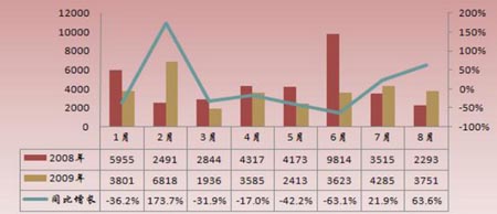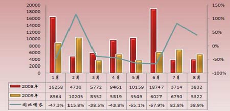 圖2、2009年1-8月公交客車注冊走勢圖