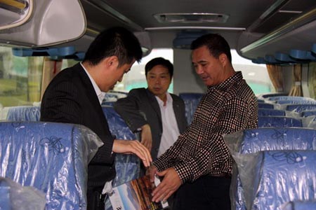客戶與大金龍四川市場部經(jīng)理付曉波探討車內(nèi)空間設(shè)計