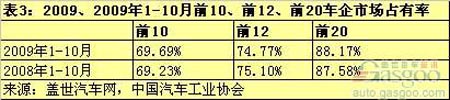 10月和1-10月同比增長率最高的企業(yè),如10月同比增長率超過90%的唐駿歐鈴、長安、東風、東安黑豹、北汽福田,1-10月同比增長率超過40%的長安、山東凱馬、東安黑豹、力帆,基本都受益于汽車下鄉(xiāng)政策。長安、山東凱馬、東安黑豹、力帆今年1-10月的排名也比去年有所提升。