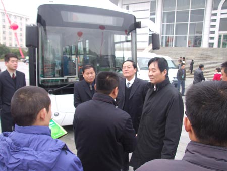 開幕儀式結(jié)束后,劉燕華副部長(zhǎng)在相關(guān)人員的陪同下首先參觀了百路佳新能源公交巴士,在聽取了百路佳董事長(zhǎng)李維的介紹后,劉燕華副部長(zhǎng)高度評(píng)價(jià)了百路佳在新能源發(fā)展方面所做出的積極的探索和取得的碩果,特別是就百路佳客車率先將中國(guó)的新能源客車出口澳大利亞和歐洲市場(chǎng),劉燕華副部長(zhǎng)除了表示肯定之外,更提出了很多建設(shè)性意見,鼓勵(lì)百路佳繼續(xù)加強(qiáng)自主創(chuàng)新,改善產(chǎn)品結(jié)構(gòu),拓寬海外市場(chǎng),最后,劉燕華副部長(zhǎng)語(yǔ)重心長(zhǎng)的向李維董事長(zhǎng)列舉了一系列諸如全國(guó)每年汽車尾氣排放量等數(shù)據(jù),告誡大家環(huán)保的重要性和迫切性。李維董事長(zhǎng)也向劉燕華副部長(zhǎng)表示,百路佳會(huì)繼續(xù)加大在新能源客車方面的研發(fā)投入,爭(zhēng)取讓新能源客車早日實(shí)現(xiàn)量化生產(chǎn)。