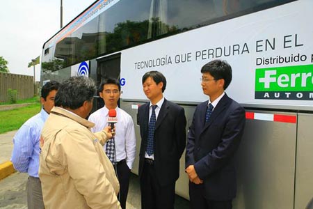09年歲末,“南美明珠”秘魯迎來了遠(yuǎn)道而來的中國客人。在中國貿(mào)促會及中國機(jī)械工業(yè)聯(lián)合會組織下,由13家知名企業(yè)參與的“中國汽車國際巡展”,在智利首站后,又在秘魯境內(nèi)上演了精彩的“中國秀”。秘魯電視臺、電臺、報紙等各主流媒體紛紛對活動進(jìn)行了報道。宇通此次參展的四臺展車作為“巡展”團(tuán)組成員全程搭乘的活動用車,成為整個巡展車隊的“大個子”與“大塊頭”。這四款車以令人驚嘆的外觀設(shè)計、出色的各項(xiàng)性能深受秘魯各界的關(guān)注和好評,同時宇通還榮獲了此次中國汽車國際巡展組委會頒發(fā)的客車業(yè)唯一一個“中國汽車南美出口貢獻(xiàn)獎”。