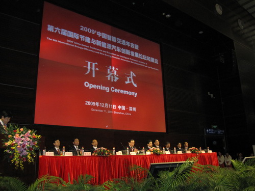 2009年12月11日上午,由全國智能交通系統(tǒng)協(xié)調(diào)指導小組、全國清潔汽車行動協(xié)調(diào)領導小組、中國智能交通協(xié)會、深圳市人民政府聯(lián)合主辦的“2009’中國智能交通年會暨第六屆國際節(jié)能與新能源汽車創(chuàng)新發(fā)展論壇和展覽”在深圳拉開帷幕,本次活動主題為“智能交通新能源汽車——創(chuàng)造出行新方式”。全國政協(xié)副主席、科技部部長萬鋼,廣東省委常委、深圳市代市長王榮,中國智能交通協(xié)會理事長吳忠澤出席本次活動并發(fā)表演講。開幕式由科技部副部長杜占元主持。來自公安部、交通運輸部、工業(yè)和信息化部、鐵道部、住房和城鄉(xiāng)建設部、總后軍交部、國內(nèi)外政府以及歐洲、日本、韓國智能交通協(xié)會及國際汽聯(lián)的代表應邀出席了本次活動的開幕式。