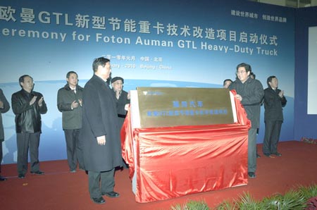 總投資額逾26億元的福田汽車北京歐曼GTL新型節(jié)能重卡技術(shù)改造項(xiàng)目啟動暨歐曼GTL品牌發(fā)布儀式,今天在北京福田懷柔廠區(qū)隆重舉行。福田北京歐曼GTL新型節(jié)能重卡技術(shù)改造完成后,將主要生產(chǎn)福田汽車的高端產(chǎn)品、具有世界先進(jìn)水平的節(jié)能重卡歐曼GTL,未來設(shè)計(jì)年產(chǎn)能將達(dá)到8萬輛。北京市市委書記劉淇、市長郭金龍等政府領(lǐng)導(dǎo)參加了此次活動,他們與福田汽車的員工共同見證了福田汽車發(fā)展歷史上的又一個輝煌時刻。
