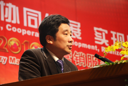 大會由玉柴銷售公司總經(jīng)理高強(qiáng)主持,玉柴機(jī)器集團(tuán)有限公司董事局主席、玉柴機(jī)器股份有限公司董事長晏平出席會議并作了重要講話,玉柴機(jī)器股份有限公司總經(jīng)理李天生致歡迎詞并作公司經(jīng)營工作報告。大會以“與時俱進(jìn),協(xié)同發(fā)展,實(shí)現(xiàn)跨越”為主題,提出了玉柴新一年的總體思路、經(jīng)營方針和產(chǎn)銷目標(biāo),并部署了2010年玉柴機(jī)器的營銷服務(wù)工作。