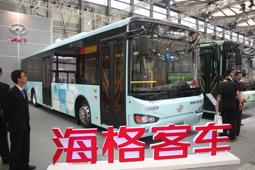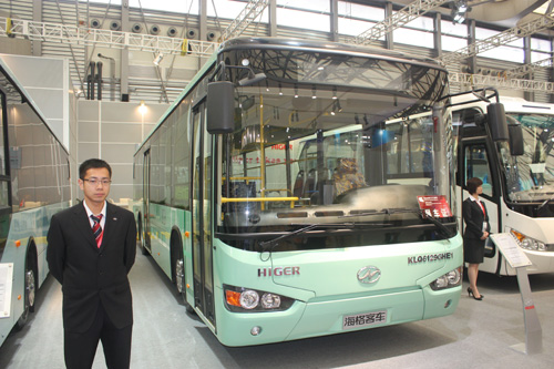 海格客車創(chuàng)領(lǐng)新能源公交方向,率先采用大功率永磁同步電機,在展會上推出12米純電動低地板城市客車KLQ6129GEV,該車主要性能達到大型超二級標準要求;外觀采用海格第四代全新造型,時尚大氣, 上演了新品處女秀。