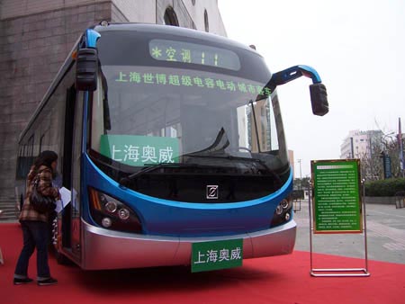 為達(dá)到“世博園區(qū)汽車零排放,園區(qū)外低排放”這一目標(biāo),此次將有超過1000輛新能源汽車服務(wù)上海世博會(huì)。其中,超級(jí)電容客車36輛、純動(dòng)力客車120輛、混合動(dòng)力客車150輛、燃料電池客車6輛、燃料電池轎車40輛、純電動(dòng)場(chǎng)地車270至300輛左右、燃料電池觀光車100輛、混合動(dòng)力轎車350輛。純電動(dòng)公交及超級(jí)電容公交組成將成為園區(qū)運(yùn)送游客的主要交通工具。