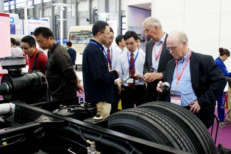 東風(fēng)旅行車公司展臺(tái)吸引了眾多外商的目光