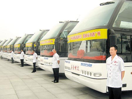 30臺(tái)德國經(jīng)典車型“歐洲之星”13日在廣東科學(xué)中心舉行交車儀式,意味著此國際頂級(jí)品牌客車首次進(jìn)入廣東市常據(jù)悉,廣州亞運(yùn)會(huì)期間,這批投資3000余萬元購進(jìn)的目前國內(nèi)最高檔新車,將為來自亞洲40多個(gè)國家和地區(qū)的運(yùn)動(dòng)員提供高質(zhì)量的交通運(yùn)輸服務(wù)。亞運(yùn)會(huì)結(jié)束后,這批車將投入市場為普通游客服務(wù)。
