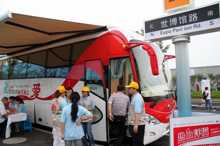 大金龍房車型獻血車開進世博園區(qū)受到各界關(guān)注