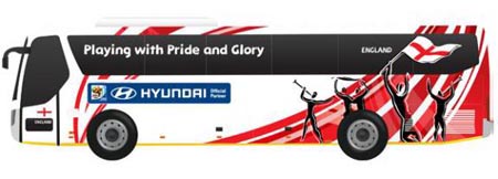 今年的南非世界杯上,32強(qiáng)隊(duì)伍各有各的特色現(xiàn)代大巴,每個(gè)大巴上面還有特色的口號(hào)。而它上面的口號(hào)則承載著太多的希望。