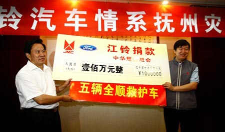 在江西等地發(fā)生的嚴(yán)重洪澇災(zāi)害,造成了巨大的人員財(cái)產(chǎn)損失,牽動(dòng)著國人的心。江鈴汽車股份有限公司全體員工心系災(zāi)區(qū)人民,在第一時(shí)間作出反應(yīng),得到福特汽車公司和江鈴集團(tuán)的支持,迅速組織賑災(zāi)捐贈,在公司董事長王錫高指示下,公司緊急捐贈5輛災(zāi)區(qū)急需的福特全順救護(hù)車并捐款100萬元人民幣,總計(jì)200萬元的款物給受災(zāi)最嚴(yán)重的撫州洪澇災(zāi)區(qū)。
