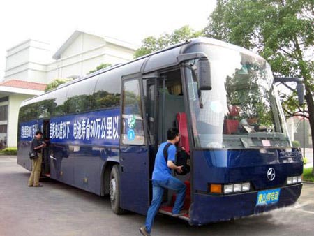 第二屆全國(guó)網(wǎng)絡(luò)媒體湖北行期間,一輛由尼奧普蘭豪華客車改裝而成的“青山純電動(dòng)”45座大客車,載著網(wǎng)絡(luò)記者們從武漢到隨州,最終抵達(dá)汽車城襄樊,400多公里的里程創(chuàng)下電動(dòng)汽車載人行駛的一項(xiàng)記錄。