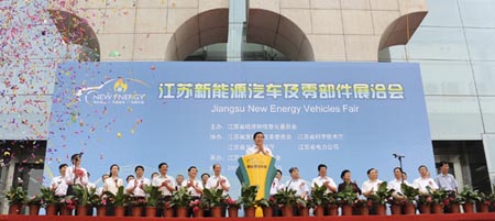 6月27日,由江蘇省經(jīng)信委主辦的江蘇新能源汽車及零部件展洽會暨江蘇省新能源汽車產(chǎn)業(yè)聯(lián)盟成立大會在南京隆重舉行。江蘇省副省長史和平、江蘇省政府副秘書長韓慶華、工信部產(chǎn)業(yè)政策司副司長盧希、江蘇省經(jīng)信委主任陳振寧、國家發(fā)改委產(chǎn)業(yè)協(xié)調(diào)司處長李鋼、江蘇省汽車行業(yè)協(xié)會會長黃小平、中大集團董事長徐連國等出席了大會。