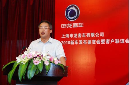 申龍客車董事長陳大城攜總經(jīng)理張嘉宇、銷售總監(jiān)蘇文海等領導出席發(fā)布會,會上申龍客車總經(jīng)理張嘉宇致歡迎詞,并針對申龍客車近年來的發(fā)展狀況作了詳細闡述,還特別介紹了公司積極參與世博、服務世博的大致情況。