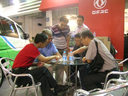 原機械工業(yè)部部長、包敘定等貴賓蒞臨東風旅行車公司展臺,詳細詢問了車輛性能和技術特點。