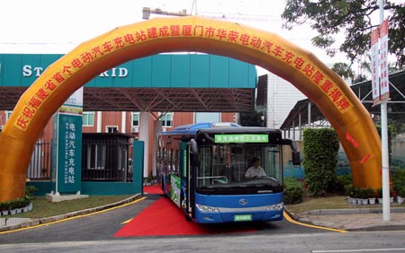 8月25日上午,福建省首個(gè)汽車充電站——廈門華榮電動(dòng)汽車充電站舉行建成慶典儀式,廈門市副市長葉重耕、廈門市政府副秘書長陳永茂、廈門市交通委主任林金平、廈門公交集團(tuán)總經(jīng)理鄭順、廈門金龍汽車集團(tuán)副總經(jīng)理、大金龍董事謝思瑜,福建省、廈門市主要新聞媒體記者百余人蒞臨現(xiàn)場。在慶典儀式上,由大金龍精心研制的純電動(dòng)客車XMQ6127AGE1作為活動(dòng)的試乘車輛,首度在廈門亮相,引來各方的熱烈關(guān)注。