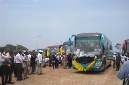 活動(dòng)現(xiàn)場,490臺(tái)宇通客車一字排開,蔚為壯觀。加納近千名各界人士和多家報(bào)紙,電視媒體參加交車儀式。加納副總統(tǒng)在致辭中高度評價(jià)了宇通客車的品質(zhì),并對宇通為加納交通事業(yè)所做出的突出貢獻(xiàn)表示感謝?;顒?dòng)中,他還親身登上ZK6129HVIP宇通客車,體驗(yàn)乘坐感受。宇通公司非洲大區(qū)相關(guān)負(fù)責(zé)人代表公司出席交車儀式并講話。
