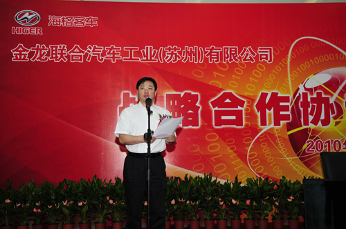 蘇州金龍總經(jīng)理吳文文和中國聯(lián)通高級副總裁姜正新代表雙方簽署了戰(zhàn)略合作協(xié)議