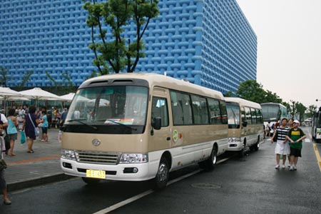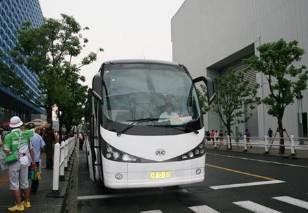 8月24日下午,一場大雨突襲上海。就在此時,世博園區(qū)石油館外,一輛安凱尊駕純電動客車昂首以待,和其他行駛在園區(qū)內的客車相比,這輛安凱純電動客車具有獨特的視覺沖擊力。