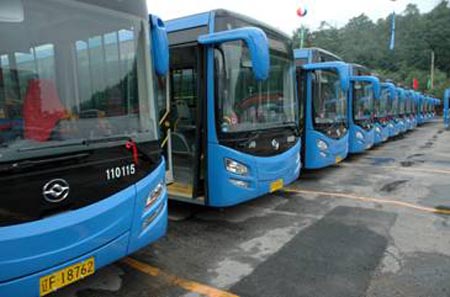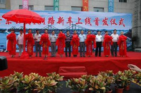 9月4日中午12時(shí)起,60輛黃海牌DD6126S12型新型豪華大容量“笑臉公交”閃亮登場(chǎng),投入丹東市公交的101路運(yùn)行,取代運(yùn)行了9年已經(jīng)達(dá)到報(bào)廢期程度在該線路上運(yùn)營(yíng)的全部公交車。上午10點(diǎn),在101路終點(diǎn)站—公交公司停車場(chǎng)舉行了隆重的新車投放儀式。丹東市政府、市人大、市政協(xié)和有關(guān)部門的領(lǐng)導(dǎo)到會(huì),與眾多丹東市民和公交公司員工一起參加了這個(gè)令丹東市民廣泛關(guān)注的活動(dòng)。