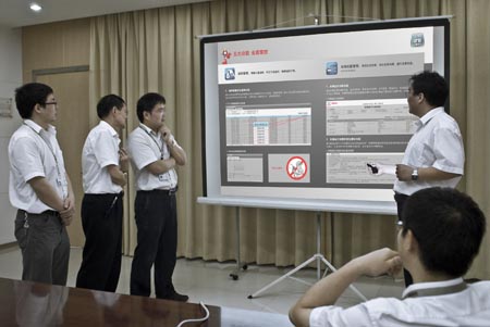 G-BOS智慧運(yùn)營(yíng)系統(tǒng)工程師在研討問題