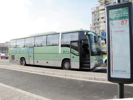 世博37號(hào)線起點(diǎn)為崇明西門(mén)汽車站,終點(diǎn)為軌道交通7號(hào)線楊高南路站,靠近世博園區(qū)4號(hào)和5號(hào)入口,中間不設(shè)站點(diǎn),全程97公里,耗時(shí)一般在110分鐘左右,票價(jià)20元。這是42條世博專線中里程最長(zhǎng)的一條線路,也是崇明地區(qū)到世博園的惟一直達(dá)線路。據(jù)巴士集團(tuán)上海崇明巴士三分公司黃敏介紹,由于該條線路有很長(zhǎng)一段是在高速公路上,不能設(shè)置站席,再加上高峰時(shí)間客流較多,崇明巴士選擇了海格49座大容量豪華旅游客車V92(KLQ6129)。