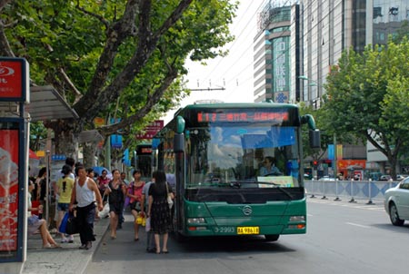 在杭州運營的金旅混合動力公交車