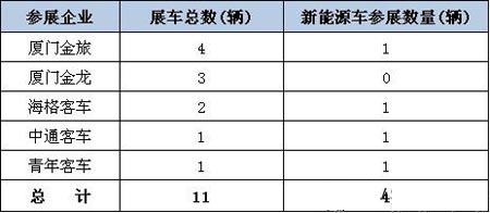 五家客車企業(yè)展車情況統(tǒng)計表