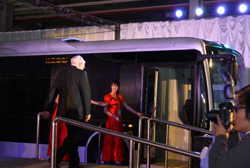 在試乘環(huán)節(jié)長(zhǎng)沙市政府領(lǐng)導(dǎo)和巴菲特、比爾蓋茨等人一同登上K9體驗(yàn)綠色旅程。作為比亞迪股東之一,巴菲特第一個(gè)登上K9驗(yàn)收自家產(chǎn)品,從巴菲特展露的笑容來看,他對(duì)這段不長(zhǎng)的旅程應(yīng)該是相當(dāng)滿意的。巴菲特的老朋友86歲高齡的芒格也同車試乘了K9,一級(jí)踏步的設(shè)計(jì)使得上車通道變得暢通無阻,老人家精神奕奕的登車、離車,十分的輕松。