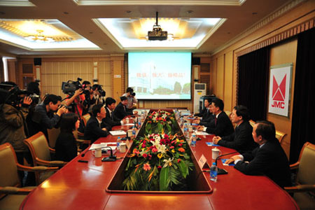 總裁陳遠(yuǎn)清向江西省人民政府副省長洪禮和等介紹江鈴•馭勝