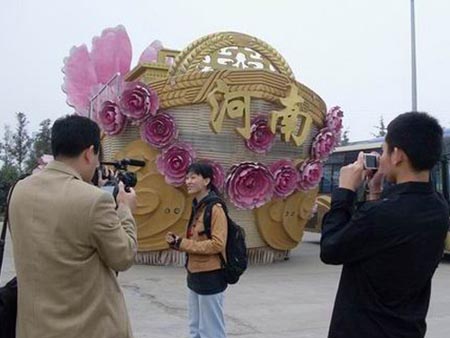 這臺(tái)宇通制造的花車,曾在國慶60周年時(shí),代表河南在北京天安門廣場(chǎng)前巡游,也吸引了“印象河南”采訪團(tuán)記者的目光