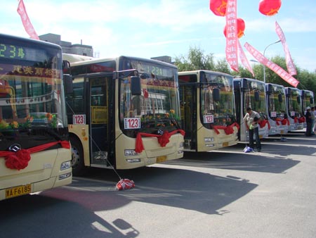 據(jù)哈爾濱市公交管理處牟副處長(zhǎng)介紹:目前,哈爾濱市共有4600余輛公交車(chē),公交線(xiàn)路141條,線(xiàn)路總長(zhǎng)度為2853.9公里。其中,液化氣公交車(chē)占70%,天然氣公交車(chē)占20%,柴油公交車(chē)占10%。使用節(jié)能減排車(chē)輛、低碳環(huán)保能源已成為哈爾濱公交的發(fā)展方向。
