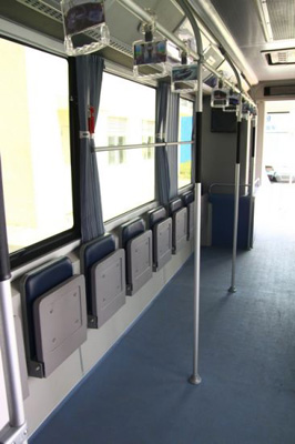 K9的載客區(qū)借鑒了地鐵設(shè)計,車身兩邊分別有一排折疊椅,相對于一般公交的固定座椅,對車內(nèi)空間的利用更為靈活,極大的增加了運載量。