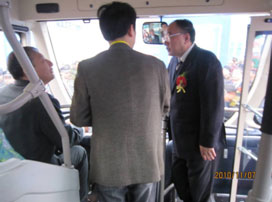 黃奇帆市長(zhǎng)和田力普局長(zhǎng)聽完介紹后專程坐上了恒通純電動(dòng)客車,體驗(yàn)新能源客車。田力普局長(zhǎng)說:“恒通研發(fā)的新能源客車榮獲了多項(xiàng)專利,值得肯定”。黃奇帆市長(zhǎng)詢問了恒通新能源客車的價(jià)格等情況后對(duì)恒通提出了“在保持現(xiàn)有發(fā)展勢(shì)頭的基礎(chǔ)上,結(jié)合國(guó)家的新能源政策,研發(fā)出更多有專利權(quán),性能好、品質(zhì)高、更環(huán)保節(jié)能的新能源客車的希望”。恒通客車副總經(jīng)理田野表示:恒通客車一定不辜負(fù)領(lǐng)導(dǎo)的期望,在市委、市府、科委、公交集團(tuán)等相關(guān)部門的支持下,不斷創(chuàng)新研發(fā),結(jié)合市場(chǎng)契機(jī),使恒通新能源客車制造技術(shù)不斷上臺(tái)階,走向世界各地。