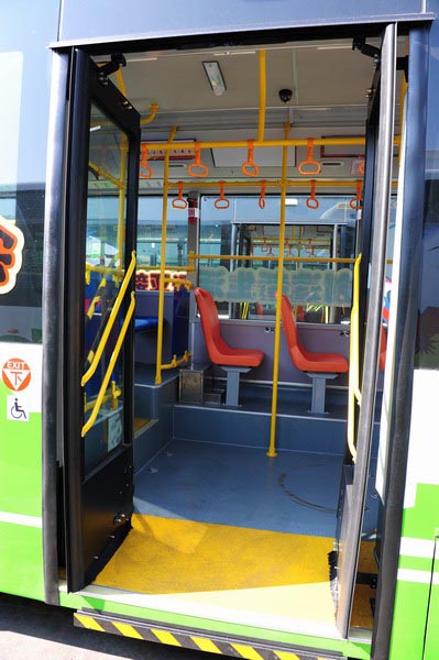 在后門的電動乘車導板可自動伸縮,方便殘障人士上下車