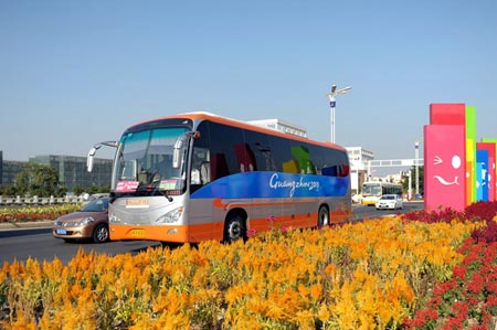 2010年11月12日,第16屆亞運會在廣州正式開幕,在為期16天的比賽中,來自45個亞洲國家和地區(qū)的9600多名運動員在賽場內(nèi)爭金奪銀成為觀眾關(guān)注的焦點;而在賽場之外,造型時尚、色彩繽紛的數(shù)千輛服務(wù)廣州亞運的客車迎來送往,同樣成為素有“花城”之稱的廣州街頭一道獨特的風景線。