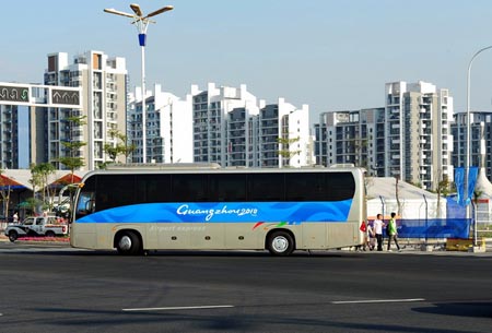 乘坐大金龍XMQ6117Y,運動員們從亞運村啟程
