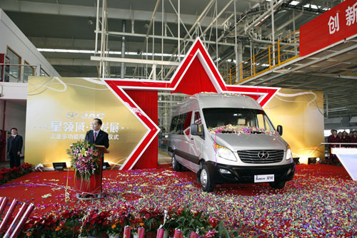 懷胎三年,一朝分娩。投資近6個億,業(yè)界翹首以待的江淮多功能商用車終于耀目出世。2010年11月29日,由江淮汽車打造的歐系多功能商用車星銳,在合肥正式下線,全面曝光。據(jù)悉,江淮星銳先期由江淮意大利都靈設(shè)計研究院負責(zé)產(chǎn)品設(shè)計和開發(fā),之后由日本東京設(shè)計研究院負責(zé)內(nèi)飾設(shè)計,與此同時,江淮技術(shù)中心商用車研究院的100多名技術(shù)人員配合產(chǎn)品的開發(fā)和試制。對標(biāo)歐洲先進產(chǎn)品,面向國內(nèi)國際兩個市場同時開發(fā),將與國際品牌同臺競爭的江淮星銳,不僅將填補中國歐系多功能商用車的空白,更將發(fā)起一輪中國高端商用車在海外市場的新攻勢。