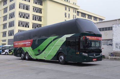 金旅XML6148特大型豪華客車線條簡潔流暢、曲面圓潤、飽滿,車身流暢富有韻律,簡約有力的線條將整車進行了完美的空間和色塊的分割,給人以強烈的藝術感染。內飾采用居家的設計理念,新穎豪華的成型內大頂,配合一體的組合風口、風道置于過道上方,再加上新穎豪華的雙條形內頂燈,更顯此款車內飾的豪華高檔、溫馨、飄逸,且更好的利用了車內的有效空間。整車采用了陰極電泳工藝,使得車身防腐能力達到10年以上。車身結構采用的是金旅自主開發(fā)的全承載車身技術及封閉環(huán)式結構形式的設計,大大提高了整車的強度和剛度。