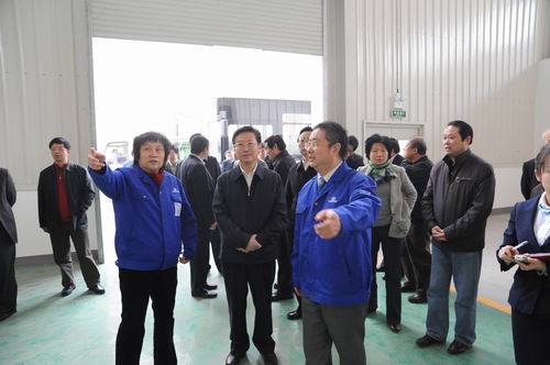 楊松書記等領導在東風揚子江董事長黃文芳、總經理黃修瑞的陪同下參觀公司新廠房。