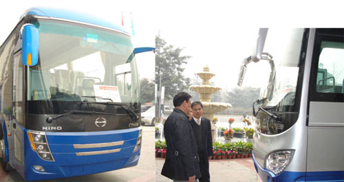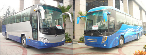 廣州亞運指定用車廣汽日野SFQ6115、SFQ6123(右)客車初到“蓉城”便備受稱贊