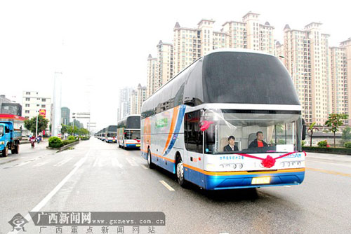 正因為該車擁有大容量、節(jié)油等功能,廣西現(xiàn)代運輸集團有限公司一口氣花近3000萬元購買了30輛“歐洲之星”,其中20輛車已到位,還有10輛將近期運抵南寧。這批車將重點投放區(qū)內(nèi)外旅游線路。比如:南寧至巴馬、東興、桂林、北海等地,區(qū)外的將把珠三角和長三角等地列為運營重點。當天下午,這批新車中的其中3輛車從南寧駛向巴馬,一旅行團共152人率先體驗該車的舒適。