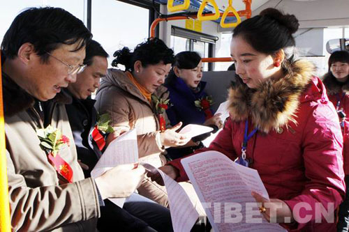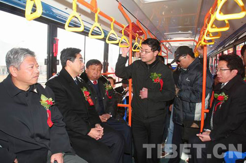 西藏自治區(qū)黨委常委、拉薩市委書記秦宜智等領(lǐng)導(dǎo)體驗(yàn)投入運(yùn)營(yíng)的新公交