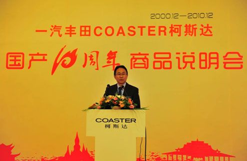 慶典儀式上,一汽豐田與來賓共同回顧了COASTER柯斯達(dá)國產(chǎn)十年來的重大事件,并展示了COASTER柯斯達(dá)超級VIP尊貴版和加裝車頂安全窗的量銷版豪華車型。同時(shí),對那些在COASTER柯斯達(dá)國產(chǎn)10年中做出了突出貢獻(xiàn)的經(jīng)銷商和忠誠VIP客戶進(jìn)行了獎(jiǎng)勵(lì)。