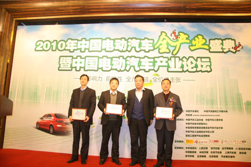 2010年12月29日,由中國(guó)汽車報(bào)社、中國(guó)汽車新聞工作者協(xié)會(huì)和汽車網(wǎng)聯(lián)合主辦的“2010年中國(guó)電動(dòng)汽車全產(chǎn)業(yè)評(píng)選頒獎(jiǎng)典禮暨中國(guó)電動(dòng)汽車產(chǎn)業(yè)論壇”,在北京隆重舉辦。評(píng)選以“綠色?低碳?給力中國(guó)”為主題,設(shè)立企業(yè)、產(chǎn)品、人物和城市組四類共計(jì)20項(xiàng)大獎(jiǎng)。北汽福田新能源汽車公司憑借卓越的市場(chǎng)表現(xiàn),一舉摘取了“年度優(yōu)秀電動(dòng)汽車企業(yè)”大獎(jiǎng)和年度技術(shù)創(chuàng)新獎(jiǎng)。