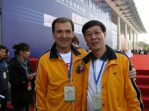 陳志強副總在出席比賽開幕式時與希臘馬拉松市市長贊韃費合影